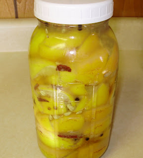 Another major hit is Spicy Carrots. Even Angel (who thinks everything I make is ‘weird’) loves these. I got this recipe from a comment made by Alyss from this post by Wardeh. I left out the jalapenos because I never have them. The picture above is the second batch that I’ve made. The first batch I made 2 quarts and they are gone. In one of the two quarts I had one lonely turnip left so I julienned it and threw it in with the carrots. WOW. Was that good. I think I have definitely learned that if I’m going to lacto-ferment turnips they need to be mixed with something else to keep them from being over powering.