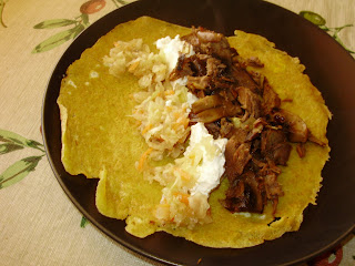 Christopher had his meat and crepe separately. I had mine all together with yogurt cheese and cortido on top of it.