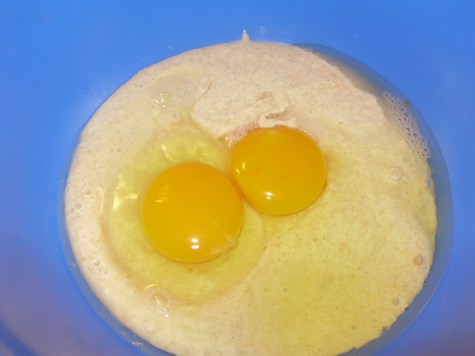 The crepes are quick and easy using sourdough starter as the base (with no additional flour). I took this picture because the eggs look sooo good on top of the starter. These are fresh from my hens and look at that amazing yolk color. The hens spend most of their day scratching around the yard at the young spring grass.