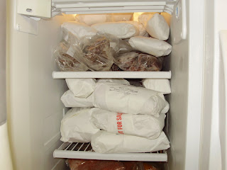 >ARE YOU KIDDIN' ME??? I guess in places like Wyoming, elk and antelope are regular items in your grocers meat case! I have to re-read this and see how much of what you have is actually also in my pantry. For sure the shrimp peels are in the freezer! Oh, and we just picked up our 1/4 grassfed beef a couple of days ago, so there is a hefty 119# in the freezer that wasn't there before! And 50# of rye flour? That will take a while to work thru, eh?