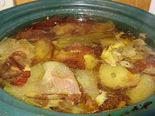 My second crock pot is also in use. That chicken I told you about earlier is being made into broth (you can see how I make broth here). Broth is probably the easiest thing I make and in my opinion has been one the best changes to our diet. I use it in soups, gravies, for cooking beans, rice or other grains or even for poaching eggs in.